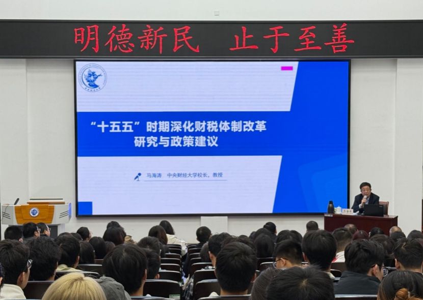 10月11日下午,应经济学院邀请,中央财经大学校长马海涛教授以“‘十五五’时期深化财税体制改革研究与政策建议”为主题,在河南大学郑州校区友兰学堂南楼B座104报告厅开展了一场兼具理论深度与实践价值的学术讲座。省内多所高校财政领域骨干教师、经济学院师生代表齐聚一堂,共同聆听了这场报告,本次讲座由经济学院宋丙涛教授主持。