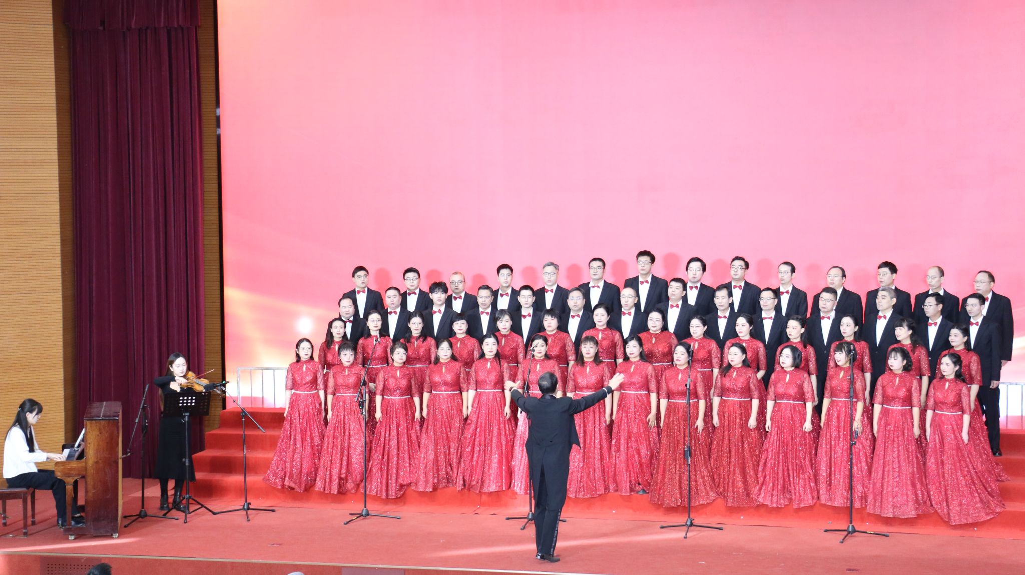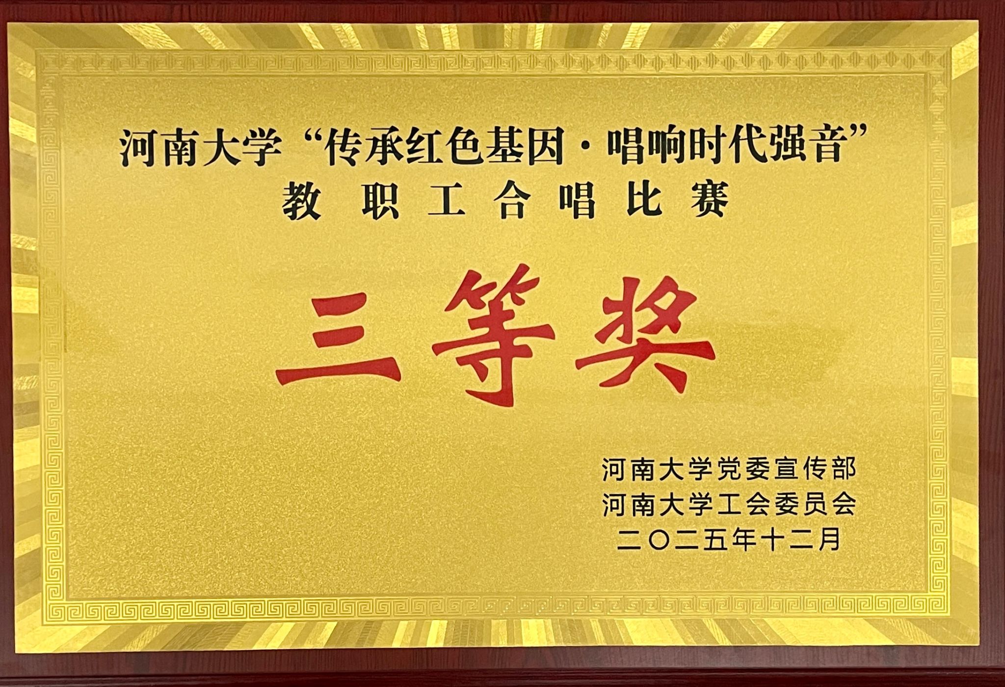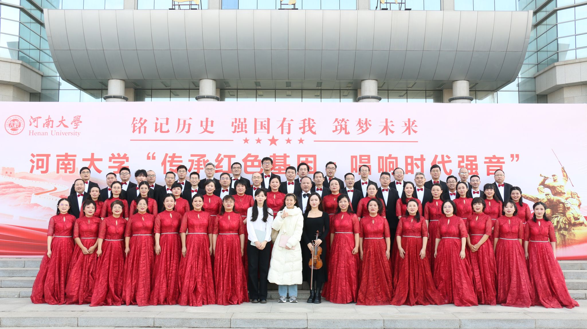 12月6日,纪念中国人民抗日战争暨世界反法西斯战争胜利80周年,“传承红色基因·唱响时代强音”河南大学教职工合唱比赛在金明校区图书馆报告厅隆重举行。经济学院教职工合唱队以饱满的热情、精彩的演绎作品《不忘初心》,从全校46支参赛队伍中脱颖而出,最终斩获三等奖。