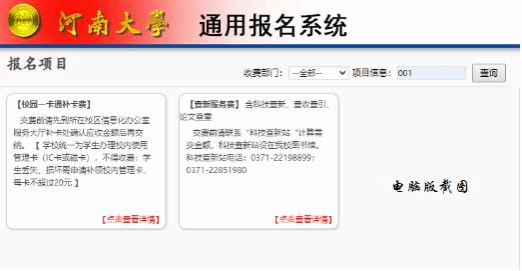自主选择项目,登录(新用户需注册)后使用微信或者支付宝交费(收款方:河南大学)。