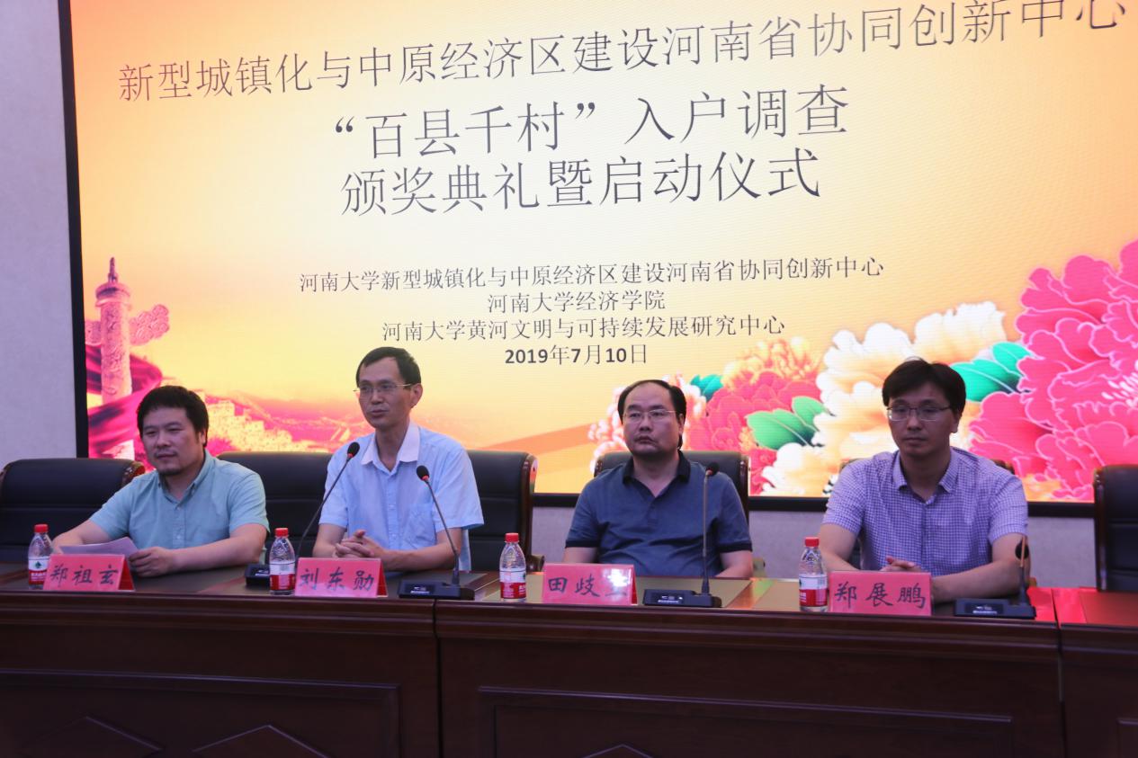 7月10日晚,由我院、新型城镇化与中原经济区建设河南省协同创新中心(中原发展研究院)、黄河文明与可持续发展研究中心联合举办的 “百县千村”入户调查启动仪式暨颁奖典礼在经济学院二楼报告厅开幕。出席本次仪式的领导有我院党委书记田歧立,副院长郑展鹏,黄河文明与可持续发展研究中心副主任刘东勋,我院副院长郑祖玄出席并主持会议。另众多研究生和广大参与调研同学参加了此次动员大会。