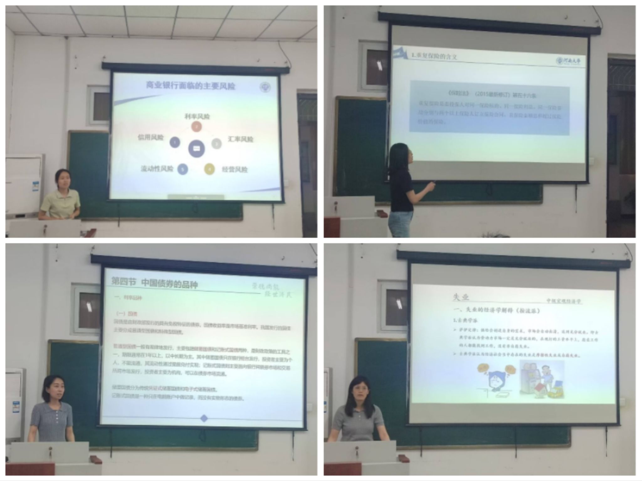 5月22日下午,经济学院金融与保险系在金明校区经济学院研究生第二教室成功举办教学技能竞赛暨金融与保险党支部“党建提质教学”主题党日活动。本次活动由系主任刘飞主持,邹双、高娜娜、杨丹丹、刘东亚四位老师同台竞技,全系教师积极参与观摩研讨。