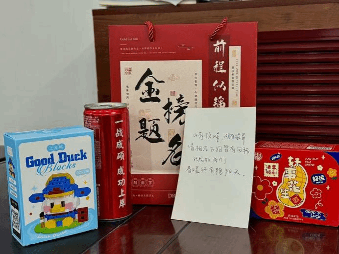 在考研暖心礼包派送现场,学院老师将满载心意的礼包逐一送到备考学子手中。礼包中既有蕴含美好寓意的暖心零食,更附有饱含真挚期许的手写寄语。将对考研学子的关怀与祝福融入点滴细节,让奋战在备考一线的同学们切实感受到学院的温情,也为他们的考研冲刺之路注入了精神动力。