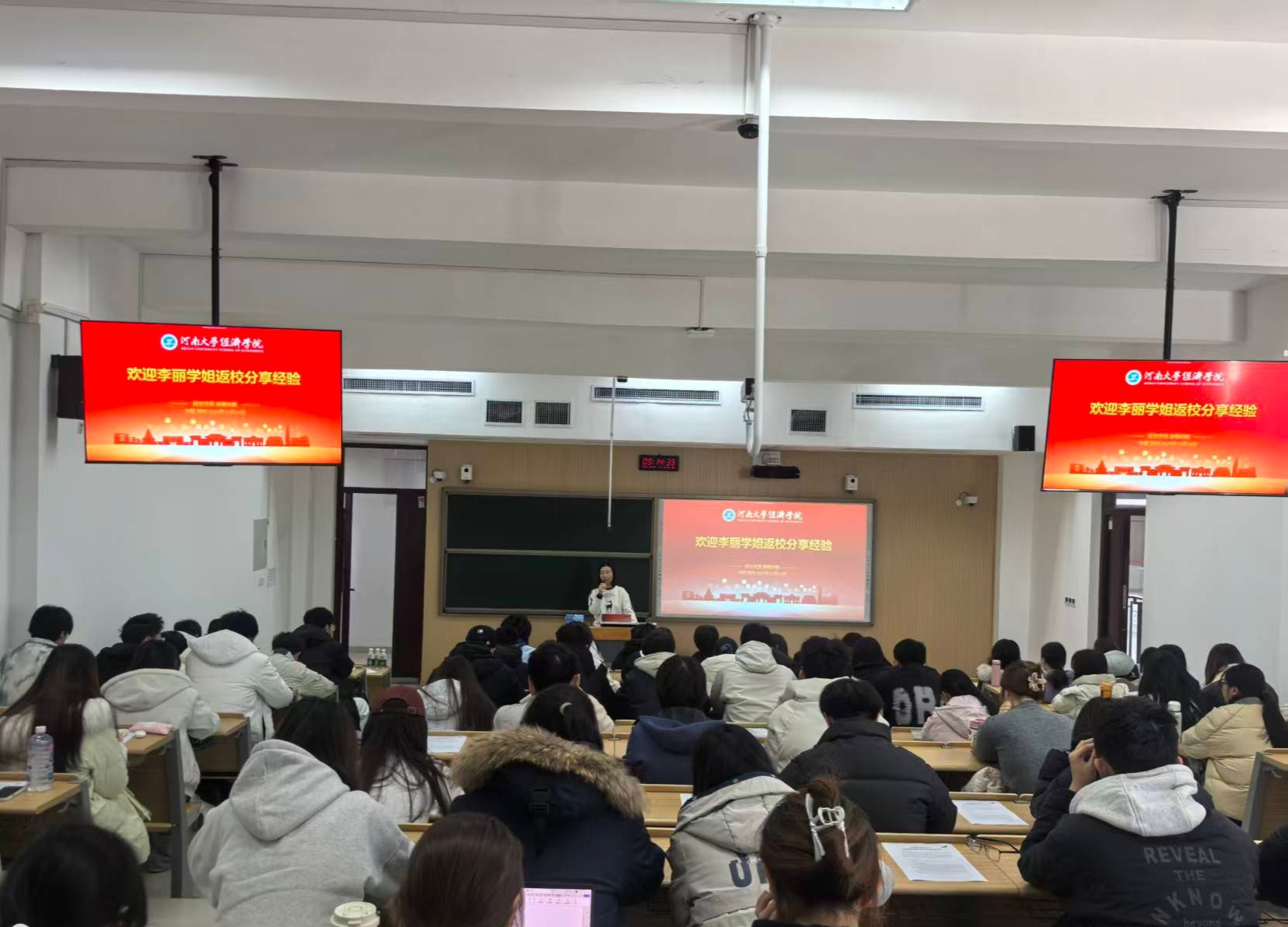 为充分发挥优秀校友的引航作用,搭建校友与在校学生的沟通交流平台,助力学生深化对绿色经济与可持续发展领域的认知,12月14日,经济学院在九章学堂北楼B座301开展了校友返校经验交流分享会,特邀河南大学经济学院国际经济与贸易专业2005届优秀校友、现任比亚迪半导体有限公司信息化负责人李丽返校分享成长经历。分享会由河南大学乡村振兴研究院副院长刘振清主持。