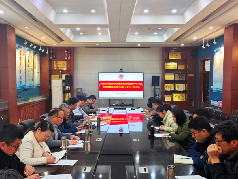 3月24日上午,经济学院在一楼院史馆召开党委理论学习中心组(扩大)学习会议,传达学习2026年全国两会精神,深入学习习近平总书记关于树立和践行正确政绩观的重要论述。学院全体领导班子成员、组织员,党支部书记、系主任及各科室负责人参加会议。会议由学院党委副书记翟志远主持。