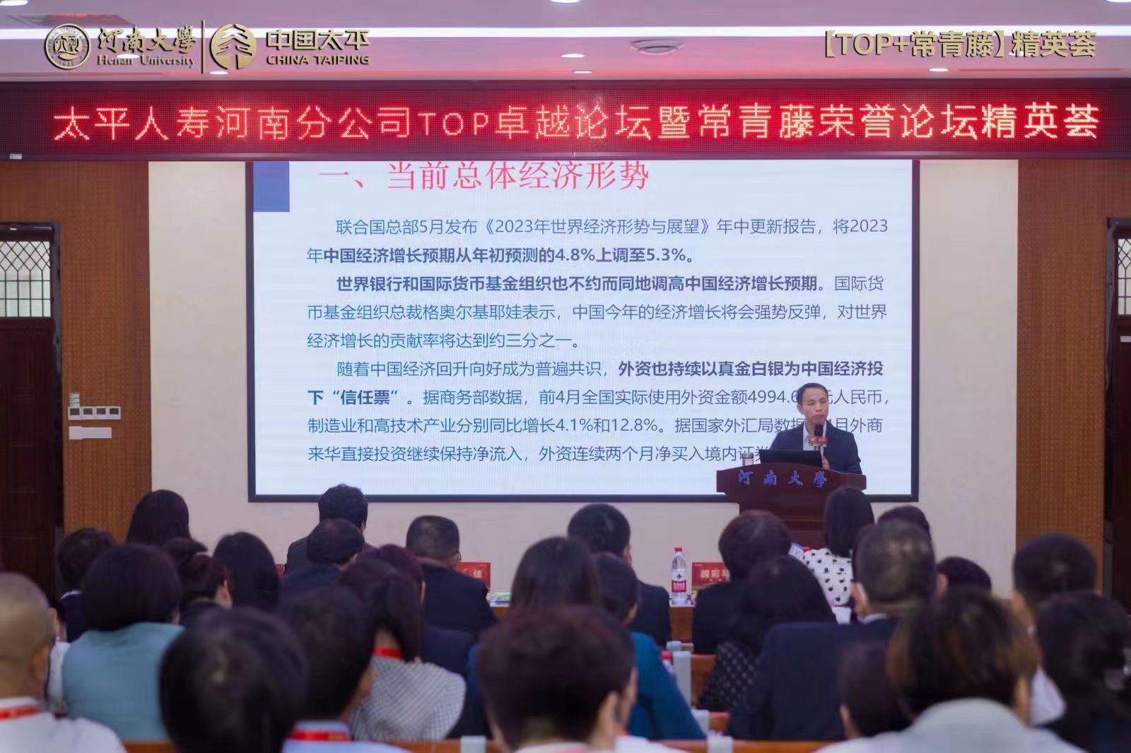 为贯彻河南银保监局“高质量”发展指导意见,落实太平人寿集团、总公司“高质量”发展战略要求,太平人寿河南分公司于5月26日至28日联合经济学院启动“太平人寿河南分公司TOP卓越论坛暨常青藤荣誉论坛精英荟”培训活动,参加培训活动的公司员工约400人。